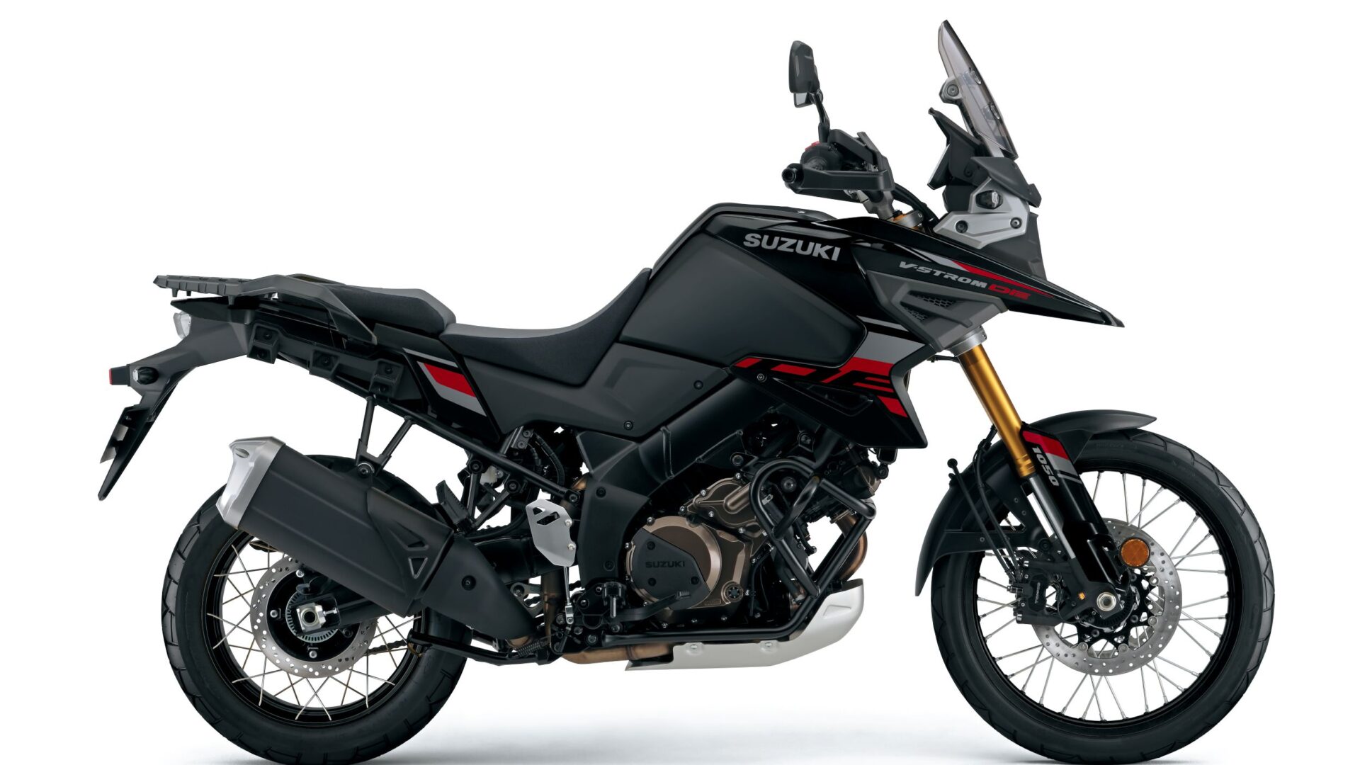 De 1.037 cc, 90° viertakt V-twin van de V-STROM 1050DE is voorzien van dubbele bovenliggende nokkenassen. Deze twin levert een hoog koppel in het middentoerengebied en heeft een levendig karakter. Zijn herkenbare V-twin-roffel en -uitlaatsound leveren een voelbaar, bijna onbeschrijfelijk rijplezier. De V-twin heeft twee elektronisch gestuurde gasklephuizen van 49 mm. Elke cilinder is bovendien voorzien van twee iridiumbougies. De eerste bougie vonkt over het gehele toerenbereik van de motor, de tweede bougie ondersteunt de verbranding en de vermogensafgifte bij lage toerentallen. De technologieën dragen bij aan een lineaire gasrespons en een stabiele stationairloop. Lichte en sterke, gesmede zuigers en holle, met natrium gevulde kleppen zijn andere hoogwaardige kenmerken van deze Suzuki V-twin. Het 2-in-1-uitlaatsysteem produceert een prettige sound, die ook profiteert van de V-twinconfiguratie.